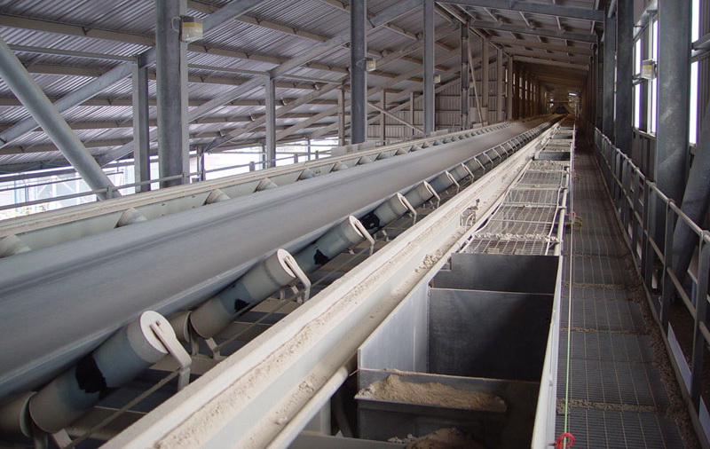 Ленточный конвейер — одно из самых распространенных устройств для транспортировки сыпучих материалов различной фракции. Типовой ленточный конвейер состоит из двух рам, на которых смонтированы вращающиеся барабаны — приводной и натяжной. Как следует из названия, первый обеспечивает движение ленты, второй обеспечивает постоянное заданное натяжение. Вращающийся барабан приводит в движение транспортерную ленту. Верхняя часть ленты является рабочей, поскольку именно на этом участке обеспечивается перемещение материалов, нижняя часть является холостой. Лента конвейера поддерживается от провисания роликоопорами, которые устанавливаются на специальный металлический каркас, называемый ставом конвейера. Также на ленточном транспортере могут устанавливаться загрузочные и разгрузочные устройства различного типа. При необходимости в комплектацию включается дополнительное оборудование (например, скребки для очистки ленты или устройства, обеспечивающие безопасность).