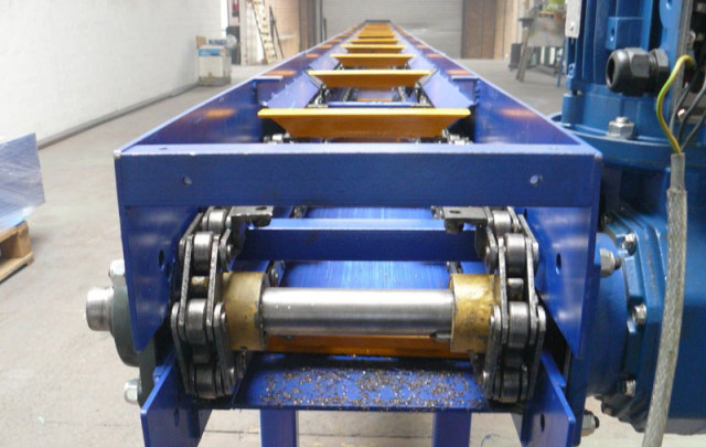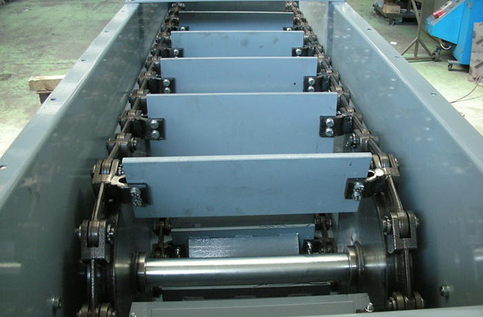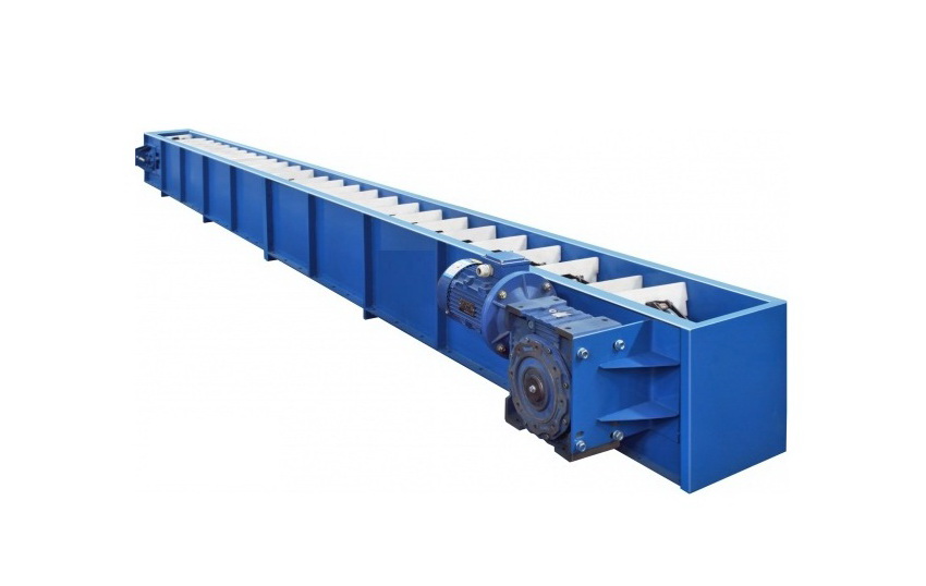 Скребковый конвейер — устройство для перемещения сыпучих материалов различной дисперсности (от пылевидных до крупнокусковых). Транспортировка осуществляется за счет скребков закрепленных на движущихся тяговых цепях.
