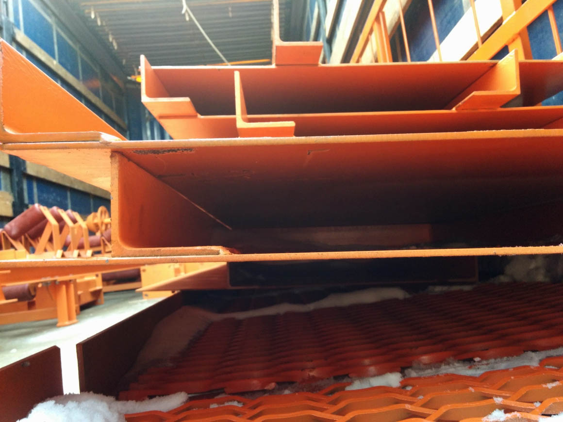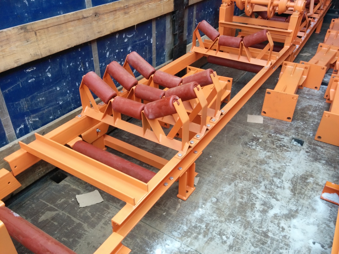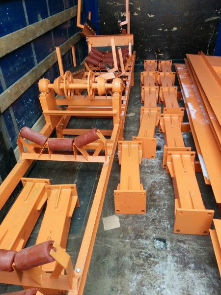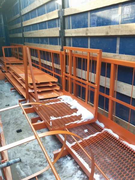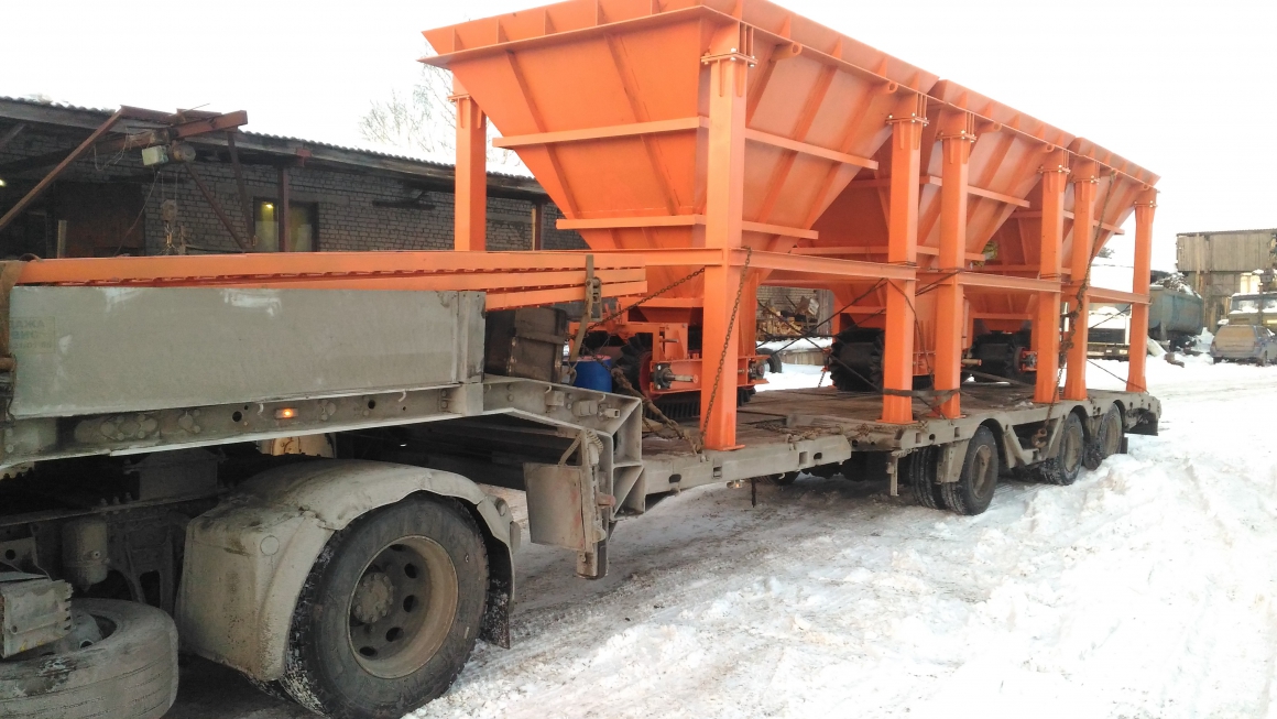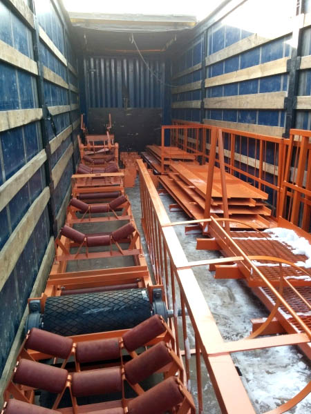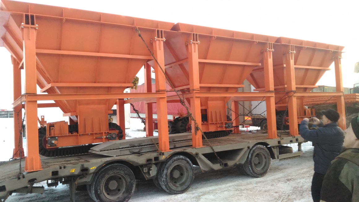 По просьбе заказчика комплекс должен был быть поставлен полностью в собранном виде, но по причине больших габаритных размеров это сделать было практически невозможно. Нашли выход - бункера ушли в собранном виде с установленными на них ленточными питателями, конвейер и площадки обслуживания пришлось везти отдельно.