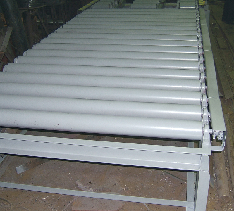 Данные конвейеры могут быть с цилиндрическими и дисковыми роликами, а также шариковые. Как правило, расстояние между роликами (шаг) принимается равным не более 1/3 длины транспортируемого груза. В приводных рольгангах груз перемещается под действием сил сцепления с вращающимися опорными роликами, которые, в свою очередь, получают вращение от группового или индивидуального приводного устройства.